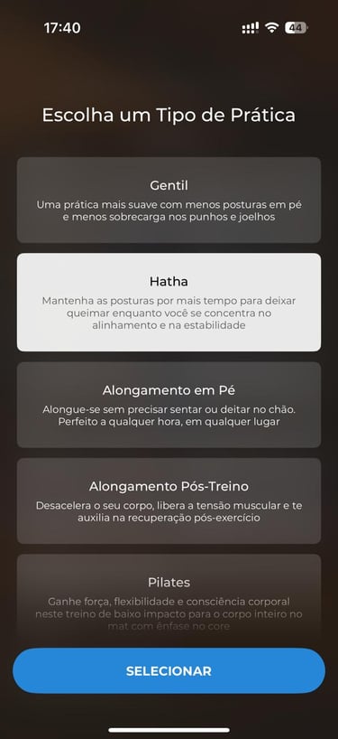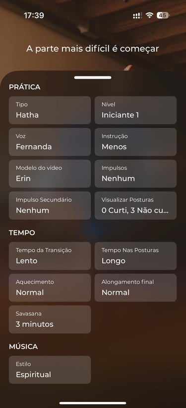 Mapeei todas as etapas do processo de criar uma prática dentro do app e analisei onde as escolhas eram limitadas, repetitivas ou pouco transparentes. Isso confirmou que, embora o app seja excelente para iniciantes, ele realmente não oferece ferramentas completas para quem quer sequências próprias.